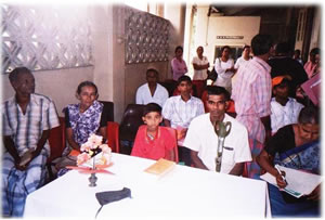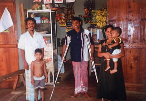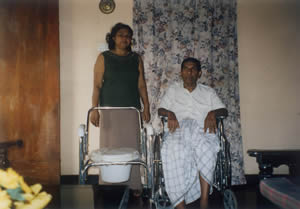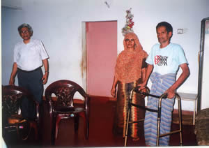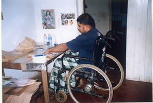 | Mr. Mohammed Khan—39 years, married with two children. He fell off a tree in 2003 resulting in complete paraplegia. He was a tailor prior to the injury. He lives with his family. A sewing machine was donated by NIPS. He together with his wife makes garments | Mr. Budhika Ariyaratne. 24 years, single, fell from a tree in 2001. He is a complete paraplegic; he was given a computer and trained in computing | Mr. Pathiratne. 45 years, married with 2 grown up children, fell from a tree in 2001. Wife left him after the injury. He is a tetraplegic, he was helped to run a grocery store and a monthly stipend is given to him. |