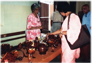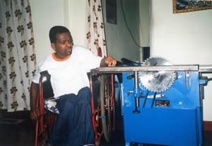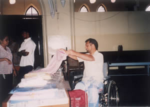 Opening a trade stall by a paraplegic on 3rd December, the "International Day of the Disabled". All items on sale were home employement products made by rehabilitated Paraplegics |