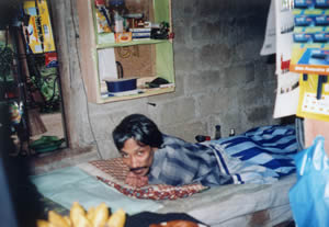 Jayantha Warnakulasooriya is 47 years old, married with a ten year old son. He is complete paraplegic with a large bed sore who lived in a shack. |
