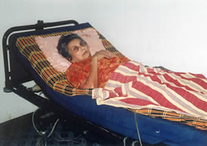 | Upali Jayasekara 38 years with a family. Fell from a electric pole. Tetraplegic, but recovered partially. NIPS helped by giving a milk cow, cattle shed and a commode toilet. A monthly stipend is given for children's education. | Special Bed Donor Mrs Monique Teeuwen of SRO Committee, based in Netherlands |